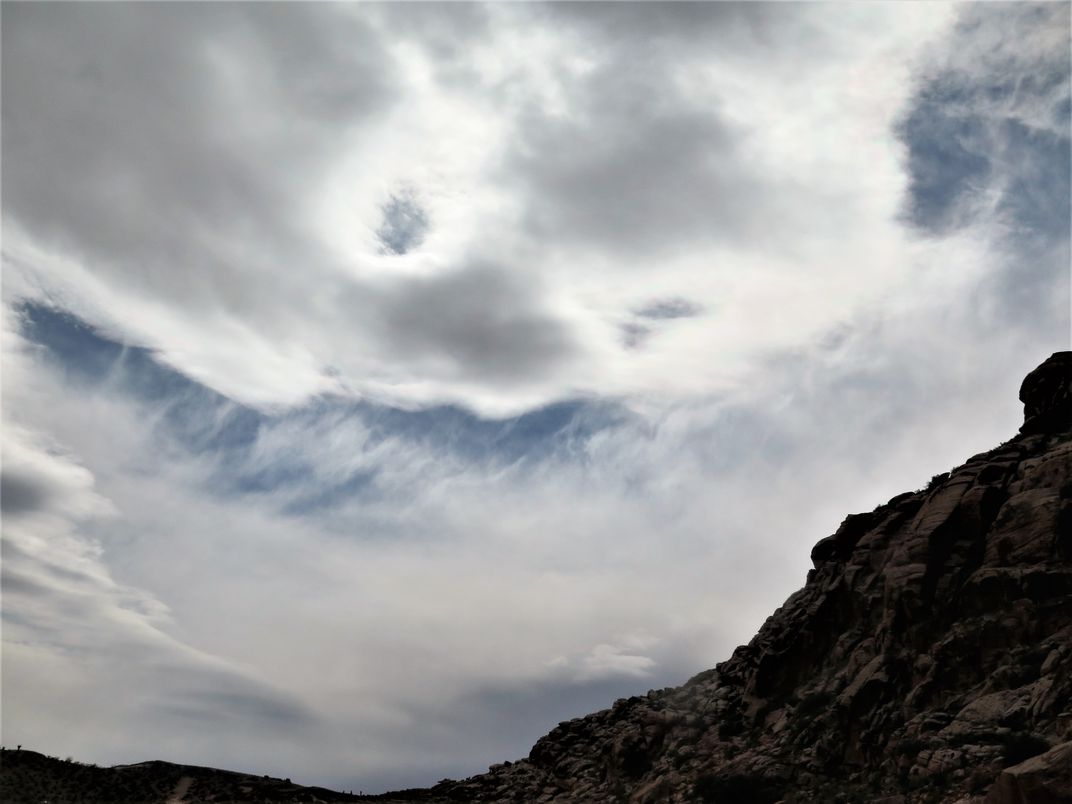 Cloud coming over the red rocks. Evil looking.