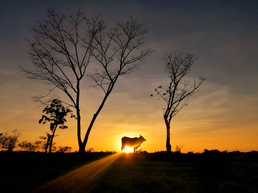 A photo of a cow conjuncted with the sunset taken by my mobile camera.