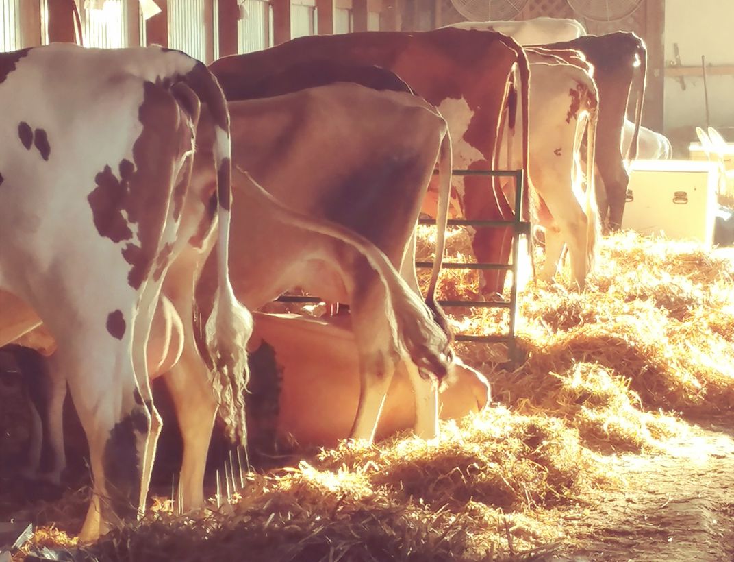 I was walking through the cow barn at the county fair and suddenly was struck by the light quality coming through the open door. The colors of the cows and hay made the scene glow. I stopped my husband to tell him I had to get this picture.
