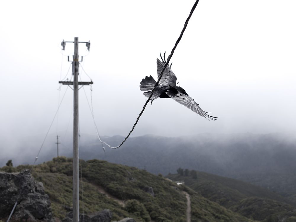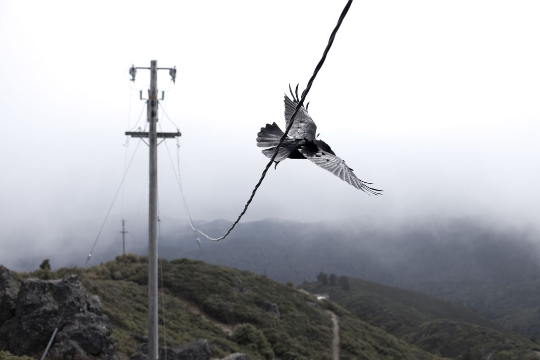 Crow off the wire on Mount Tamalpais.