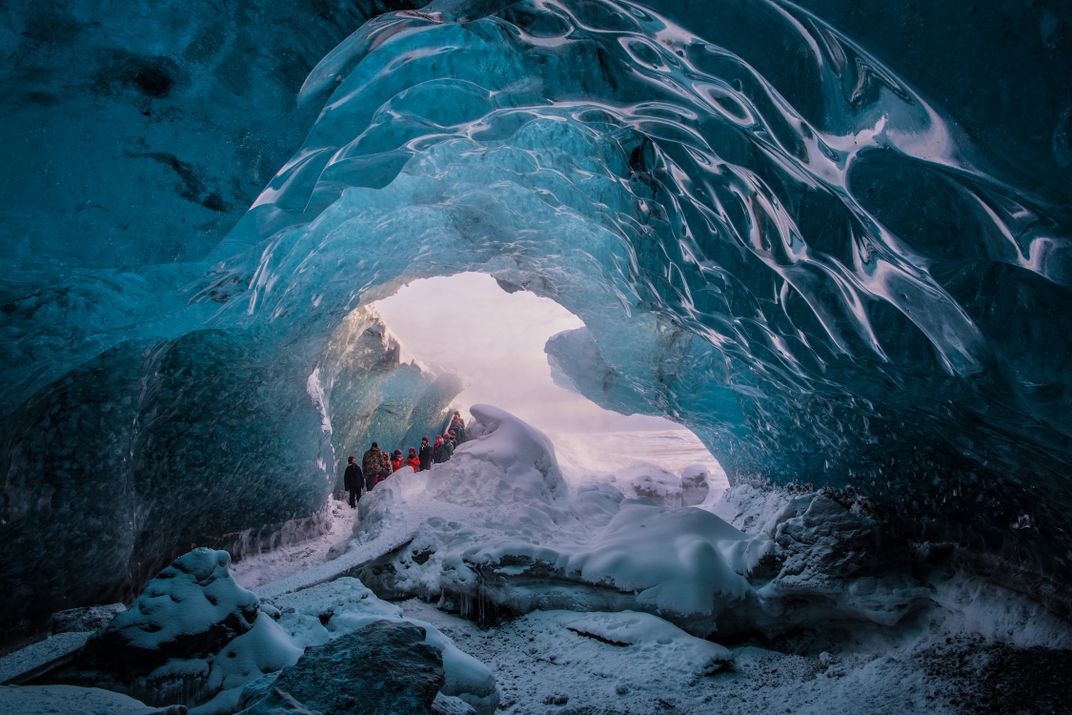 This crystal blue ice cave under the Vatnajökull glacier was breathtakingly gorgeous. It was formed from the glacier's melting water running underneath it; due to the increasing temperatures in Iceland. A beautiful yet sobering reminder of the Earth's ever-changing climate.