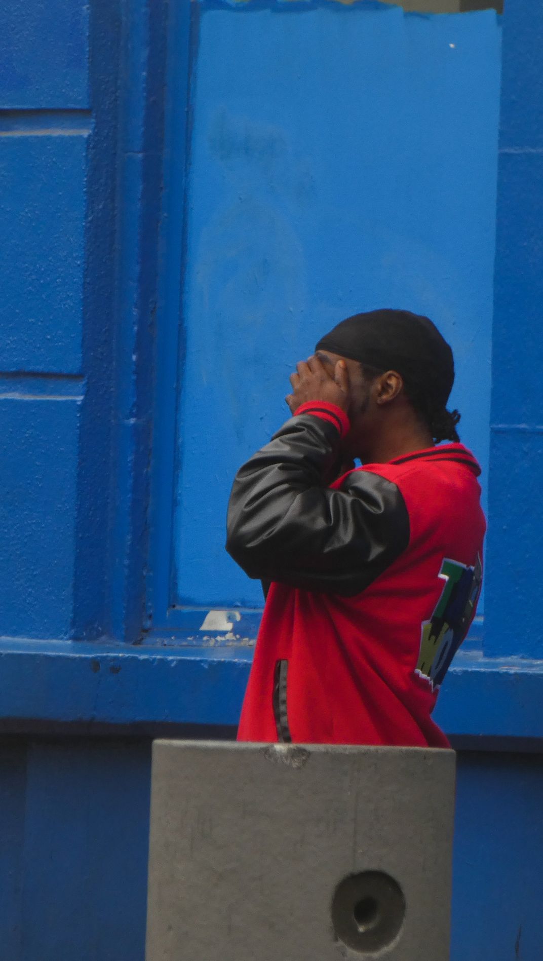 je me promenais dans le centre ville lorsque j'ai aperçu cet homme de l'autre côté de la route. J'ai aimé le contraste des couleurs