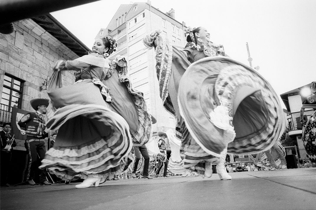 A Mexican dance group gives a demonstration in the center of town taking advantage of a Basque-Mexican cultural exchange.