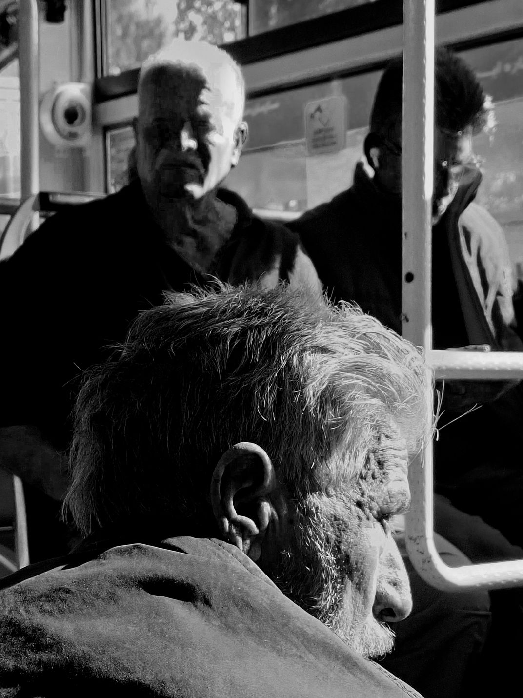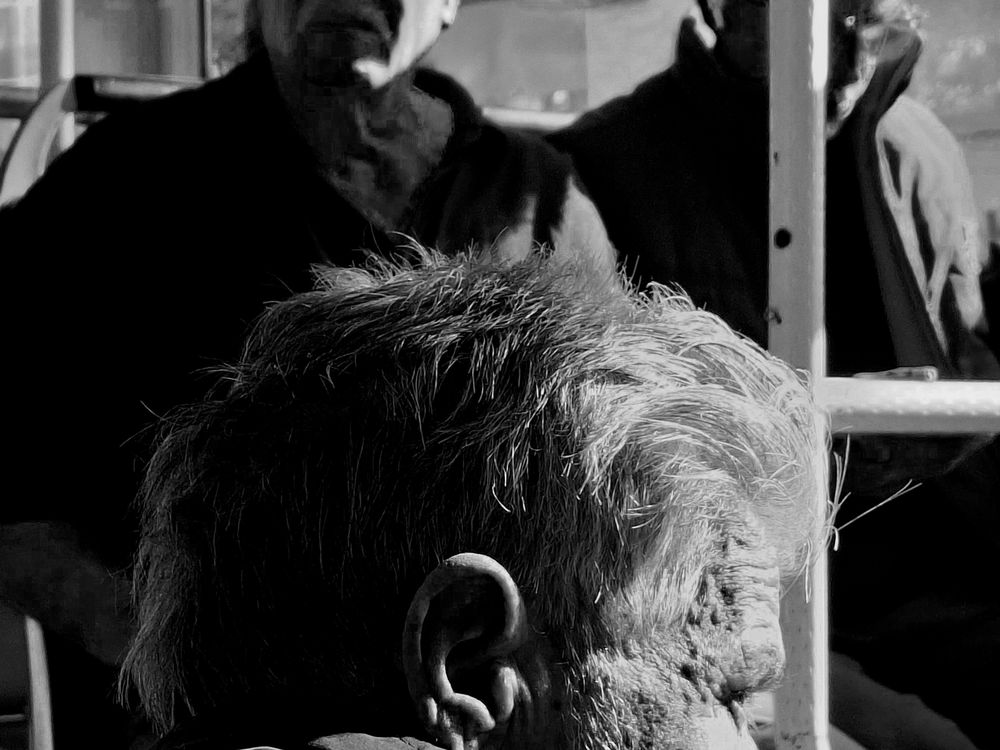 The afternoon light cast striking shadows on the bus passengers. The deep contrasts remind me of the Yin-Yang symbol, representing the dark and bright sides of humanity.
