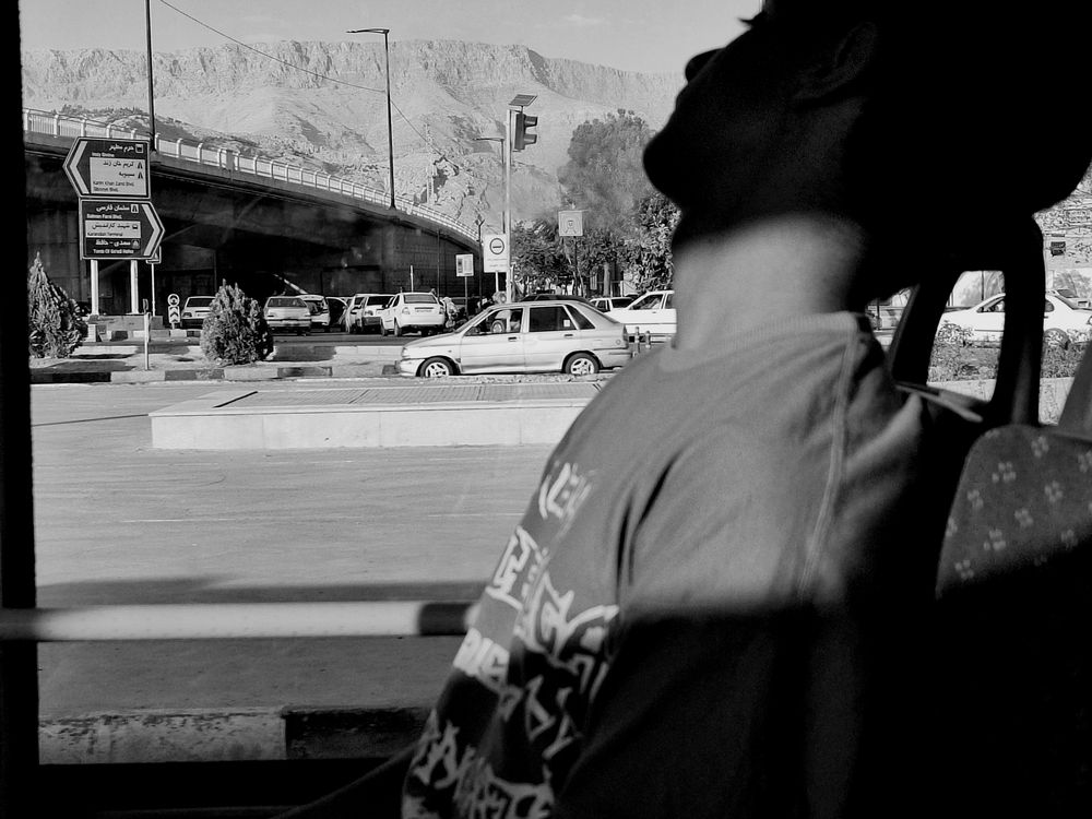 A young adult leaned back in his bus seat, lost in thought as he gazed into the distance. The reflections on the window mirrored the dreams in his mind.