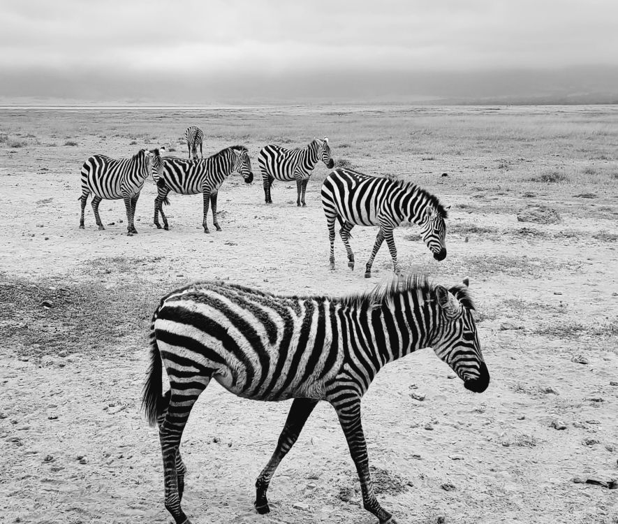 A jeep ride in the Ngorongoro Crater captured a dazzle of zebras meandering about.