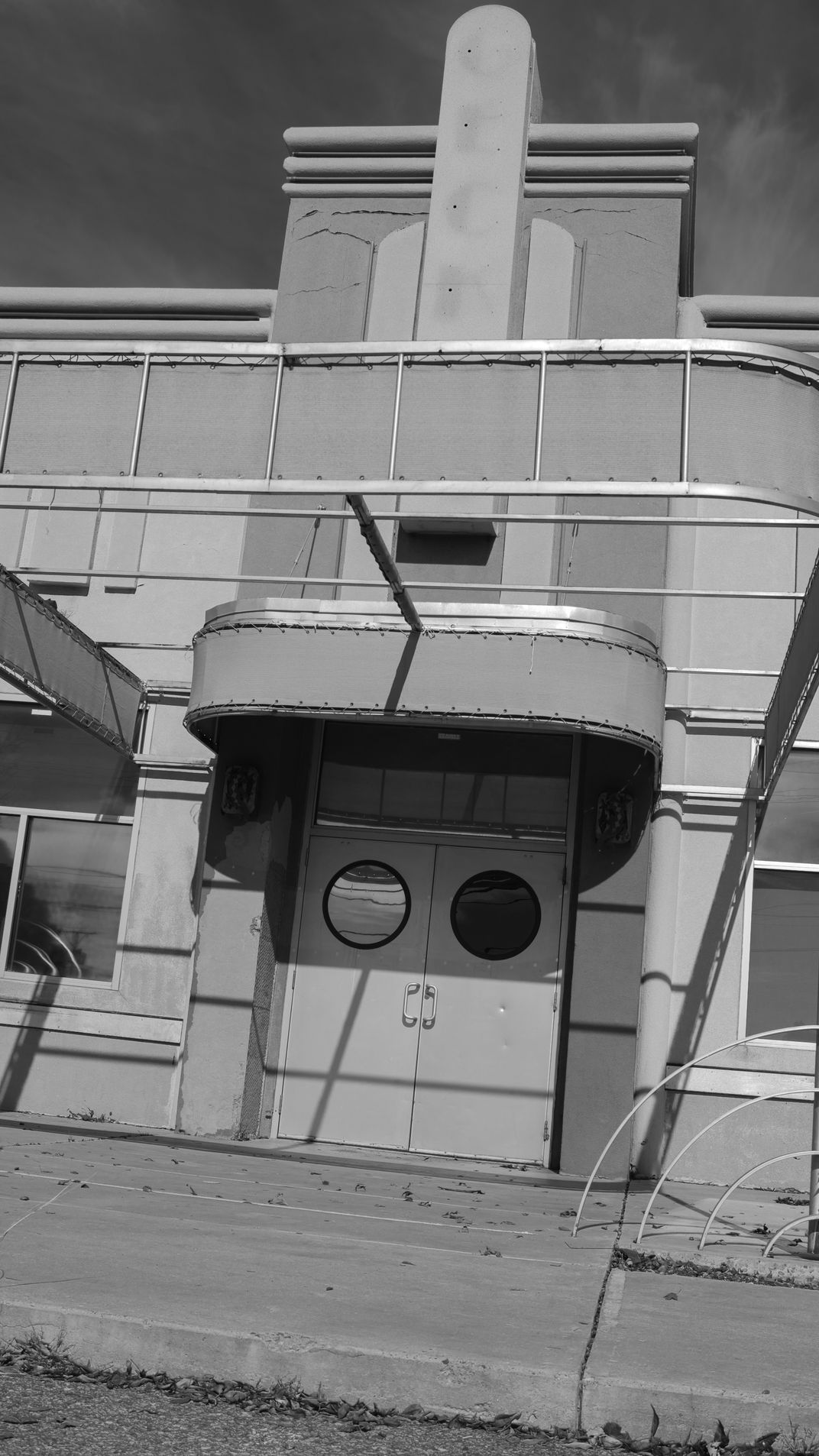 The skeletal remains of an abandoned movie theater. Santa Fe, NM, 2025.