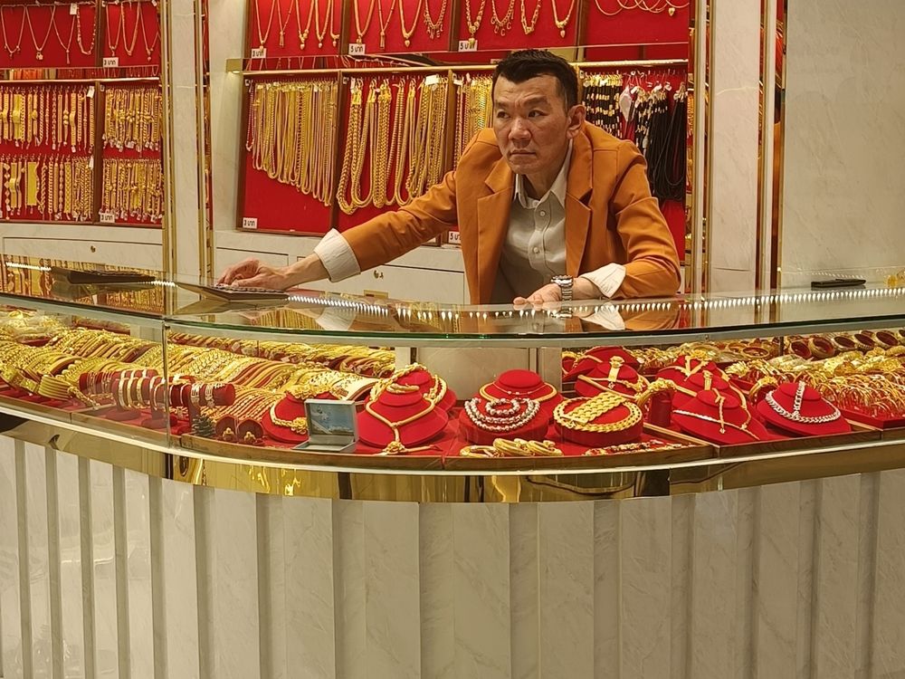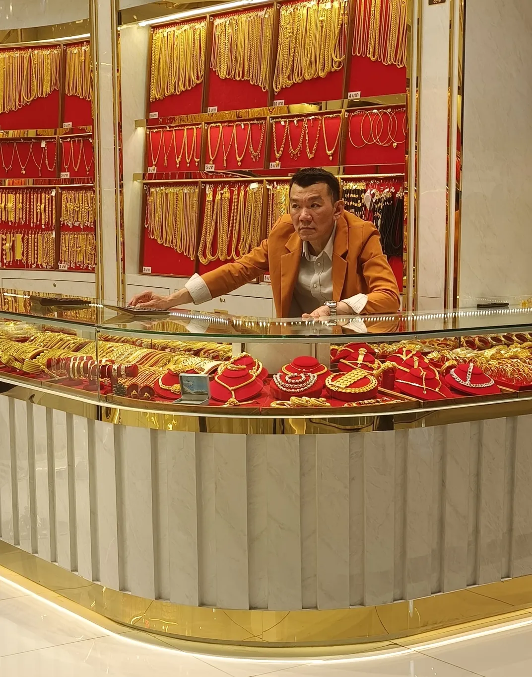 Thai dealer of gold at duty in shop