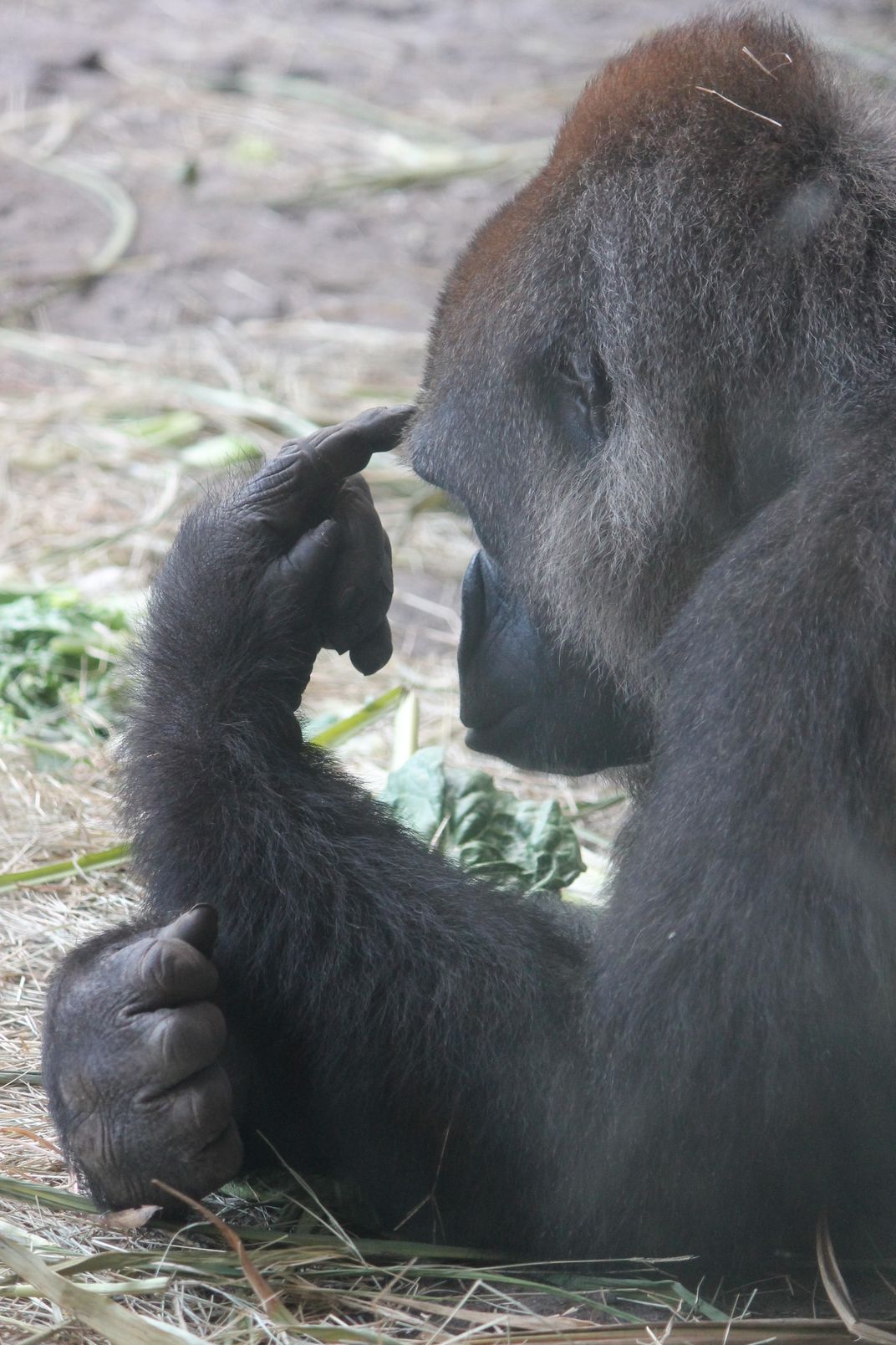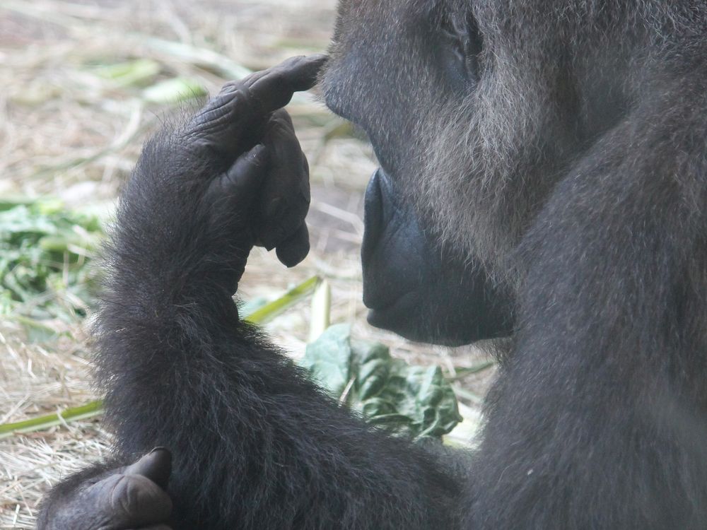 Gorilla deep in thought.