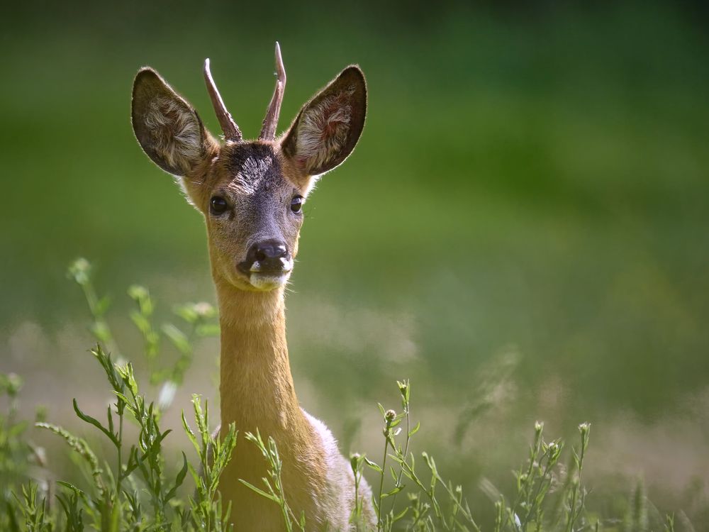 I was walking in nature between fields of very tall grass, when I heard a brief sound, and suddenly a deer head surrounding the grass. he safety looked around him. fortunately, it was a hedge between me and the deer. So, I stopped to move, and can capture this beautiful portrait.
