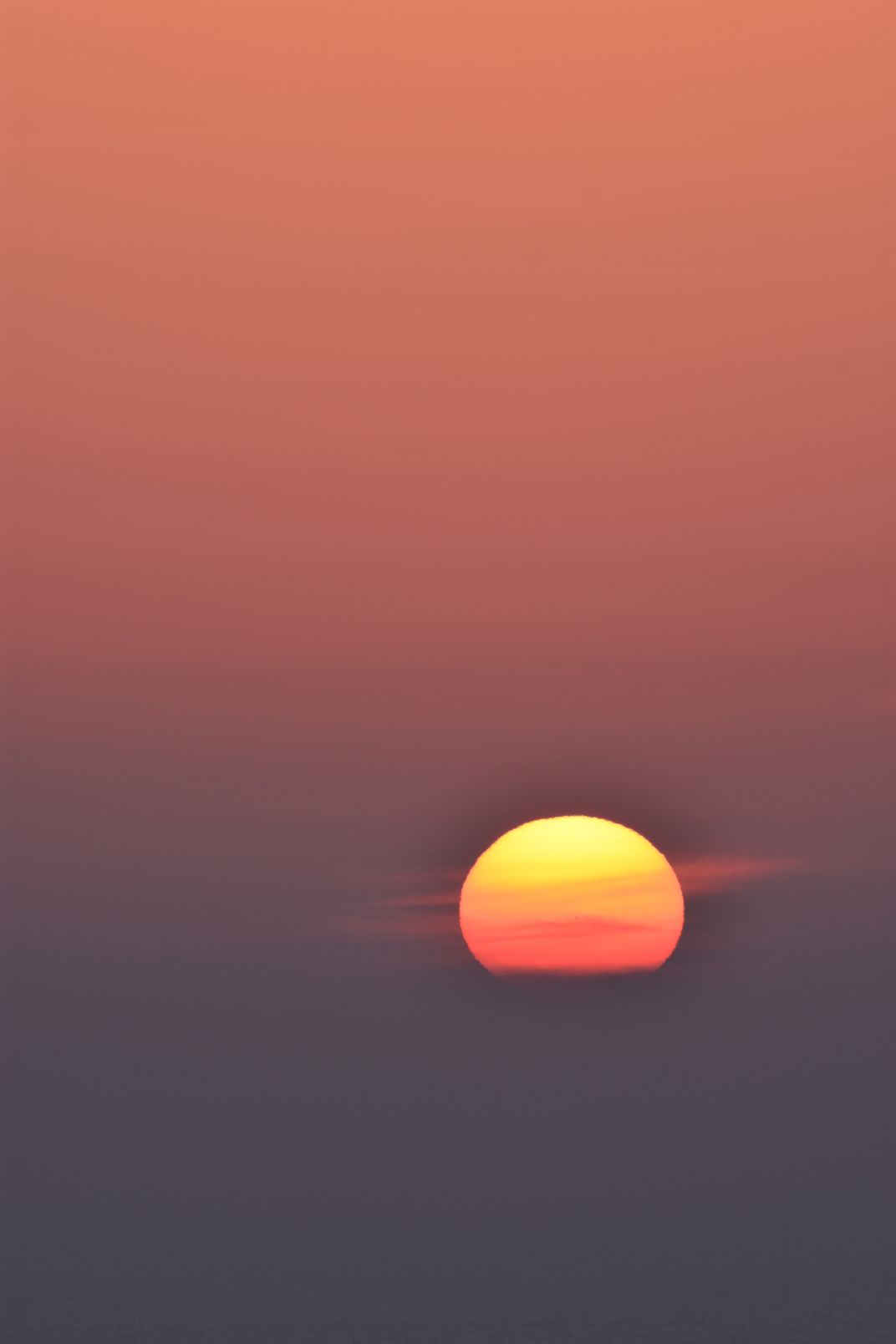 The picture is showing the degraded sky color and sun during the sunset