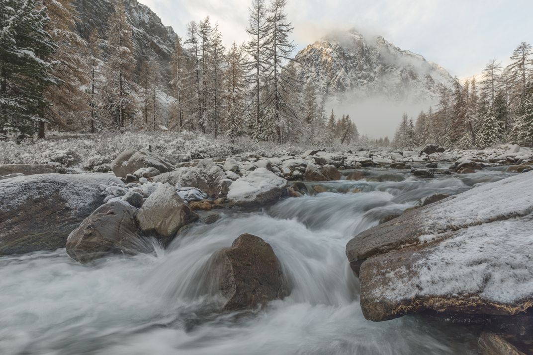 Aktru river valley, Altai republic, Russia. September 2016. Aktru river valley lies among Altai mountains. Most part of this region is classified as a UNESCO World Heritage Site.