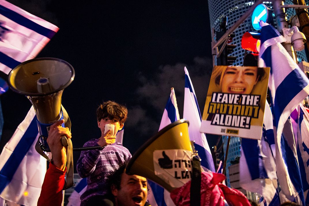 At a powerful demonstration, a young boy proudly perched on his father’s shoulders passionately reads out pro-democracy chants, embodying the hopes of a new generation yearning for freedom and justice.