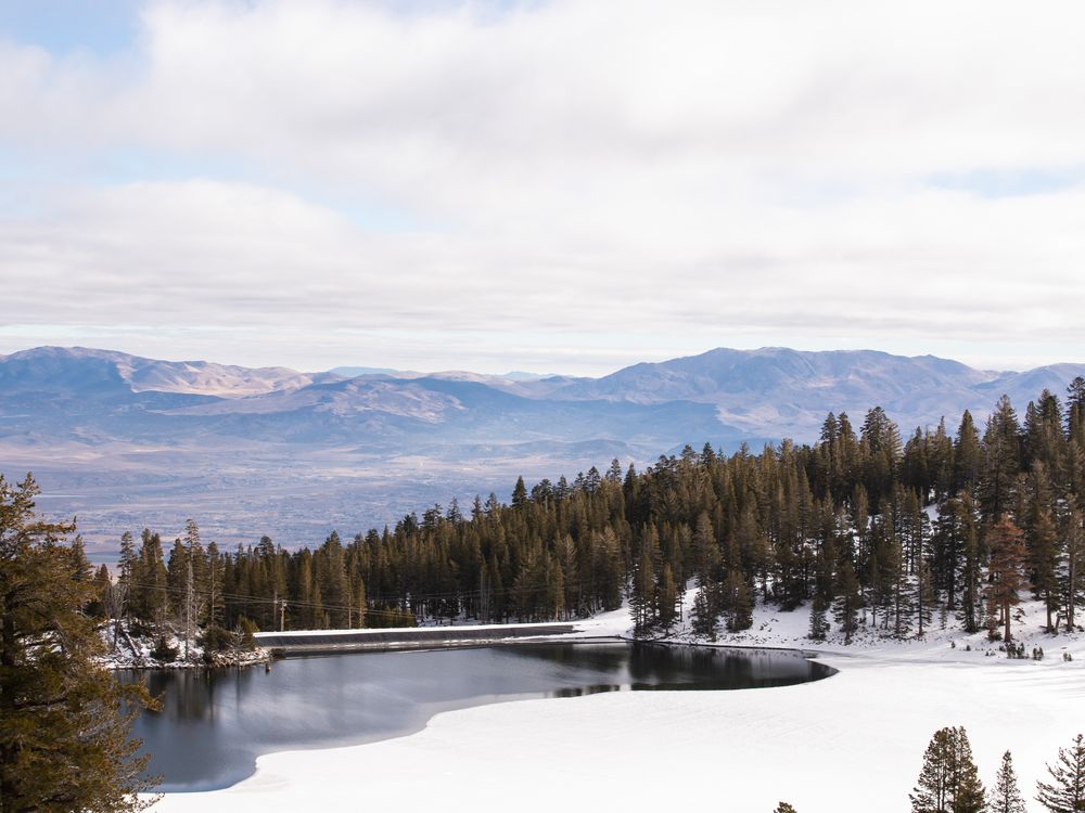 This photo is from the point of view atop of a mountain in Heavenly, NV. This was taken at a very high altitude which allow us to see the snowy mountains nearby as well as the very far off desert mountains closer towards Reno, NV.