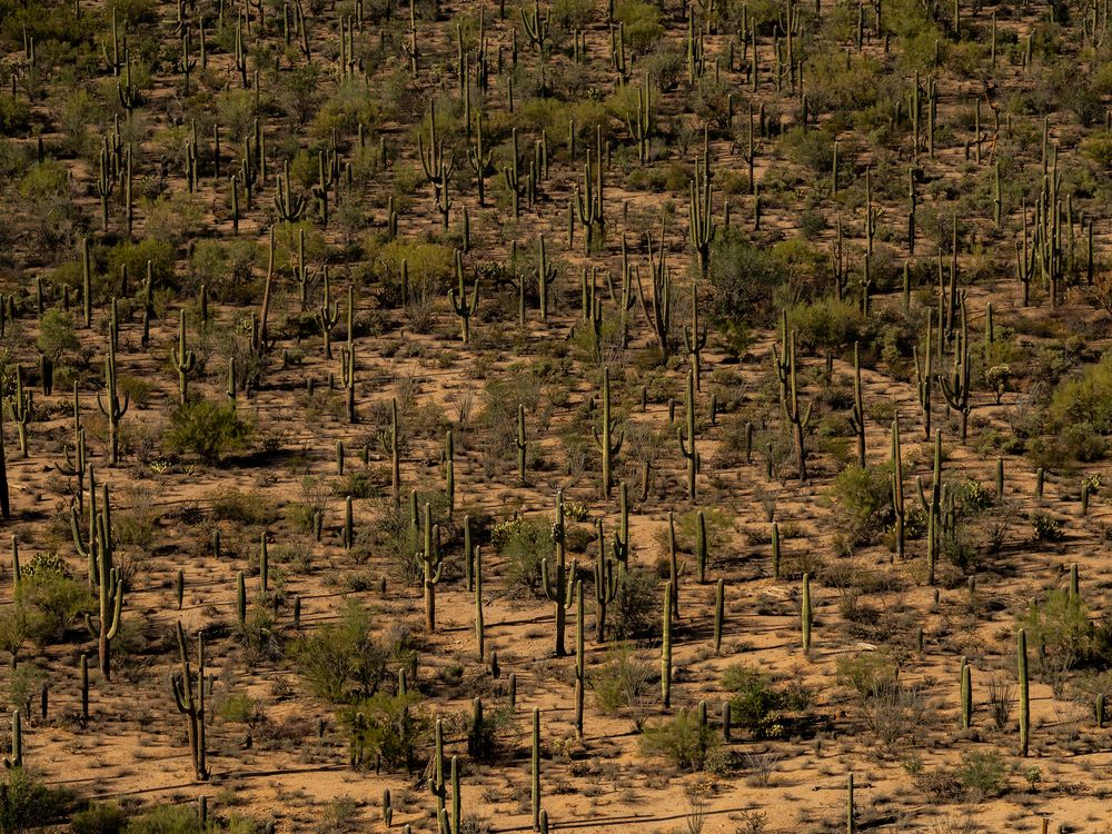 Landscape photo of the cactus forest in Saguaro National Park in Arizona