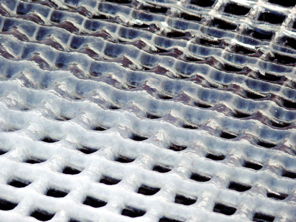 I was walking through the Manufaktura in Lodz, Poland when I noticed that iced grid due to cold temperature. That was the first day of the new year.