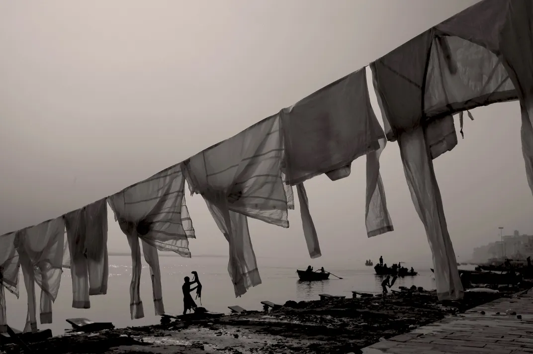 Professional washermen at work during early morning in Varanasi. Washing of clothes is banned in the Ganges and alternate sites has been provided, the age old tradition is carried on regardless because there is religious merit in having clothes washed in the holy river.