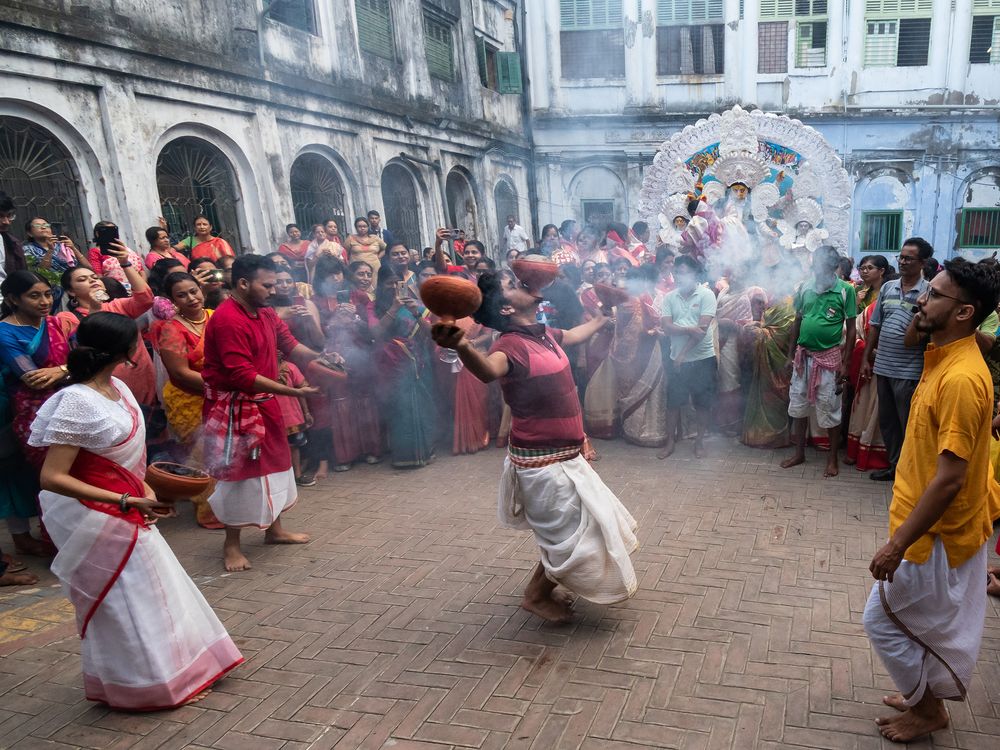 Durga Puja is the biggest festival of Bengali community in West Bengal. The last day of Durga puja is called Dashami. In this day the idol of goddess durga is going to immersion. Before that the married women are playing with vermilion and organizers are celebrating and dancing with Dhunuchi.
