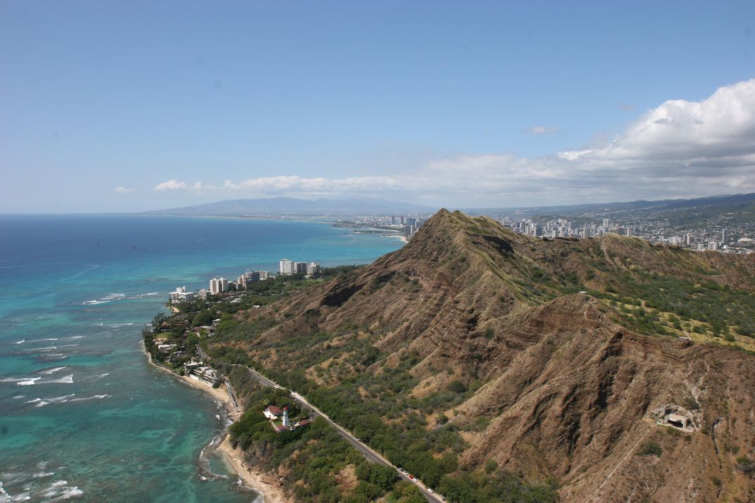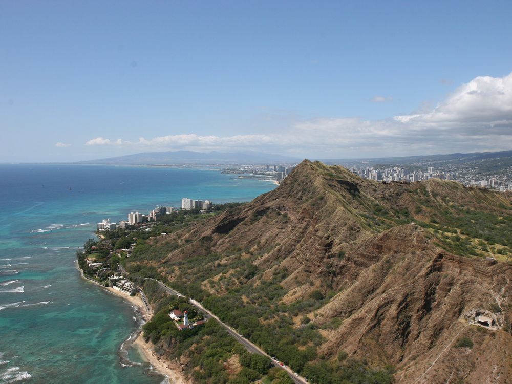 Diamondhead from the air. Photographed with a Canon EOS20D using a Canon EFS 17x55mm lens.
