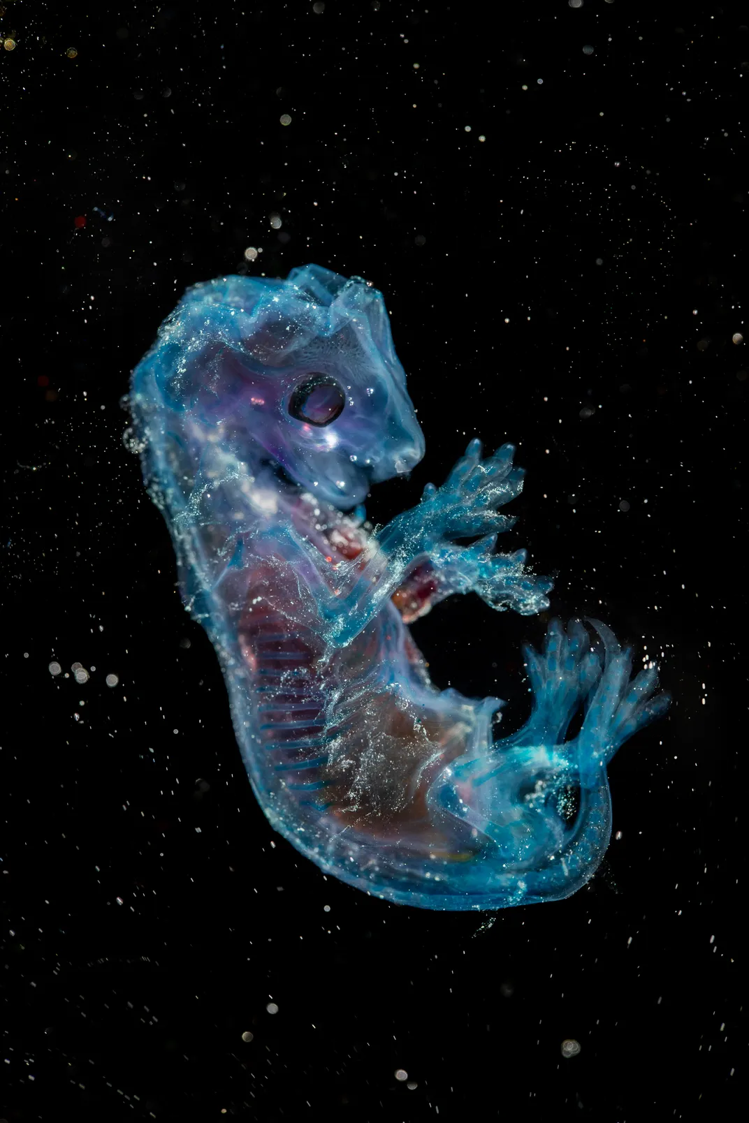 Diaphonized embryo of a domestic house cat from an aborted pregnancy due to complications in a humane shelter. The subjects in this body of work, are noted to have been sourced ethically, whether they have died of natural causes, purchased(dead) from a shelter, farm, or a licensed taxidermist. Still… they raise the question of where the affirmation of ethics really lies – whether truth is validated through documentations, real-life consensus, or perhaps something else entirely. These are the inquiries I associate with the particular (pseudo)scientific vantage point utilized to capture the subjects within this body of work. Since its invention, photography has been used alongside scientific protocols as a tool to document and quantify truth. The photograph in this body of work are taken in a biological laboratory where dead animals are preserved and studied. To me these photographs are nothing short of art objects in the way they are composed, meticulously staged and captured. Furthermore, there is a deeper meaning in these images than what meets the eyes. When we look at a photograph, we are looking at a process. We think of how pictured subjects ended up in front of the camera, why, and for what purpose?