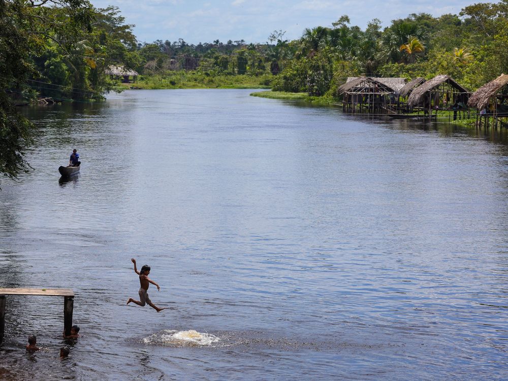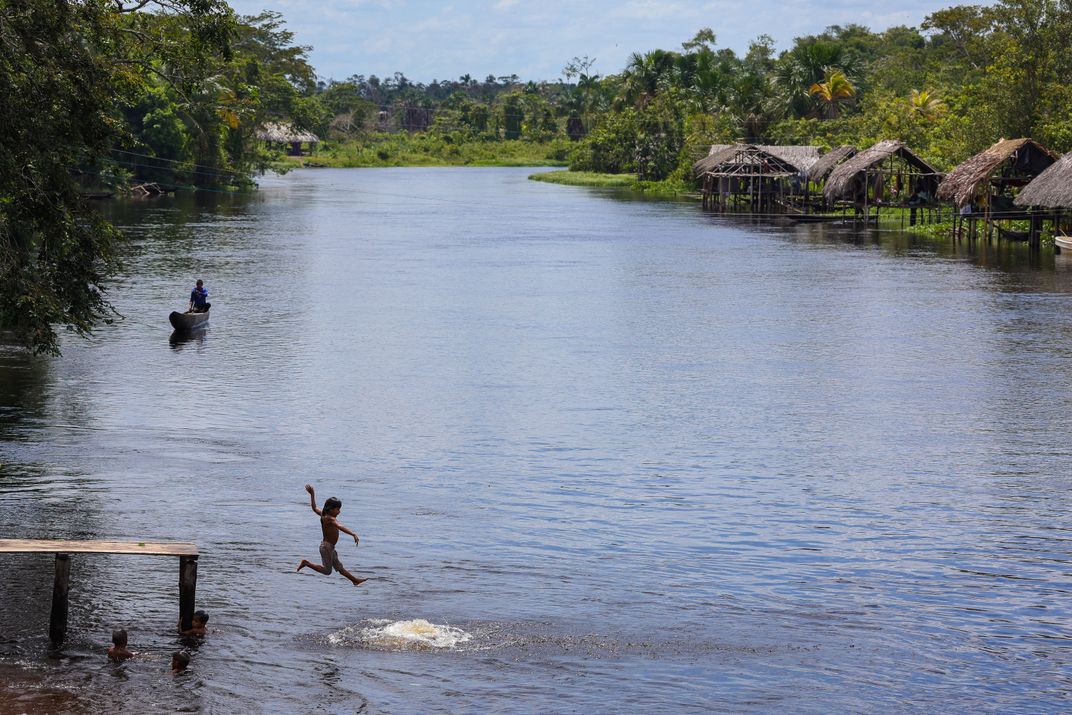 A child jumps into the Morichal River in Monagas, Venezuela.