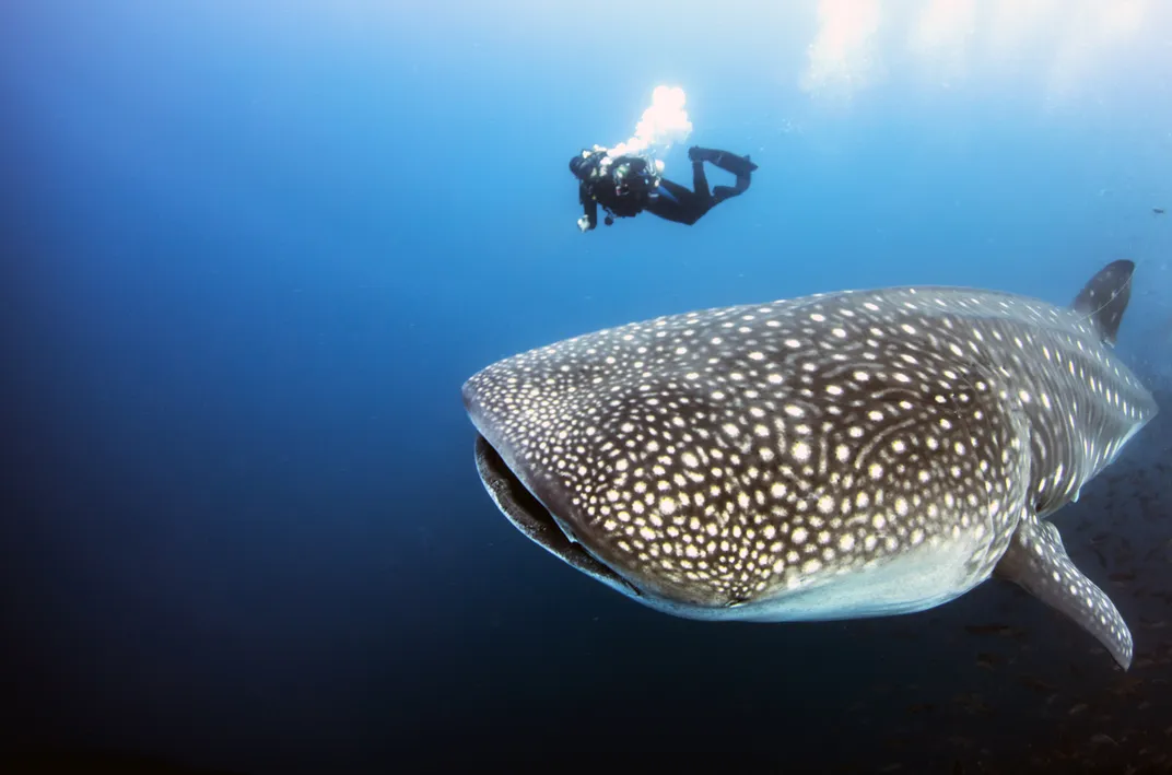 Diver For Scale (Pregnant Female Whale Shark in the Galapagos Islands)