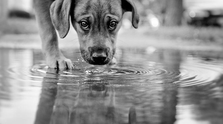 Dog lapping from puddle