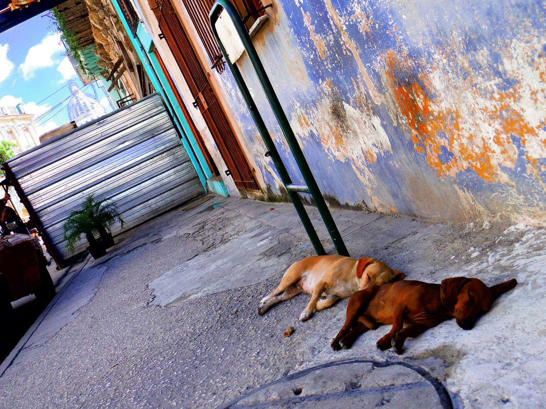Dogs are sleeping in Cuba. Natural photo.