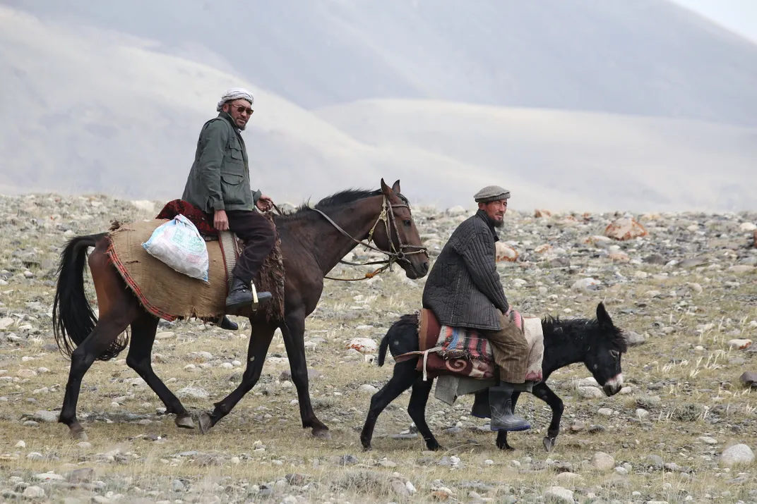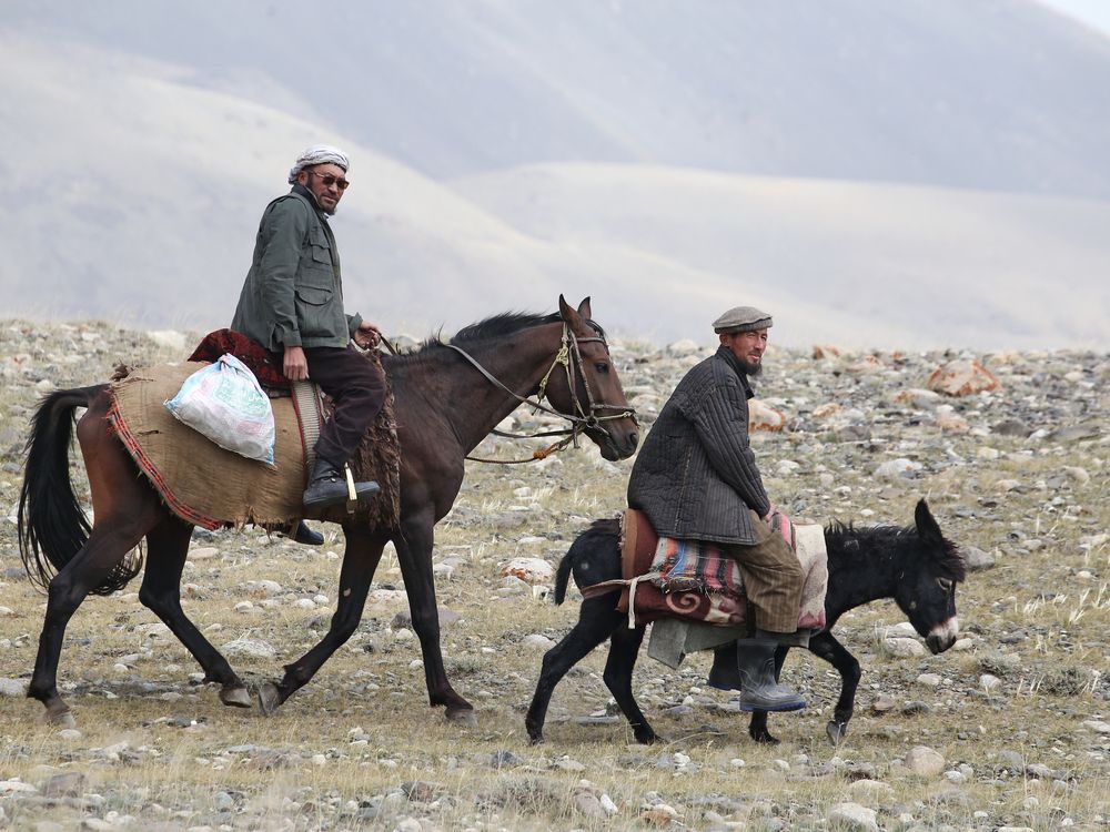 Kyrgyz nomads cross the high plateau of Little Pamir near Chakmaktyn Lake, Afghanistan