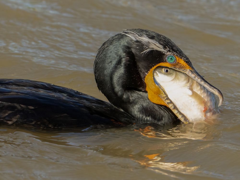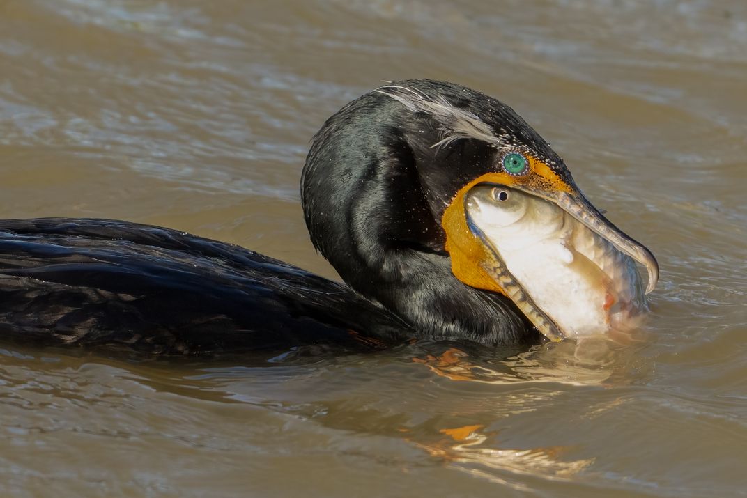 I watched as this Double-crested Cormorant dove and was lucky to be nearby when it came up with a fish - for a moment the Cormorant was eye-to-eye with its prey in a dramatic instant that I was fortunate to capture.