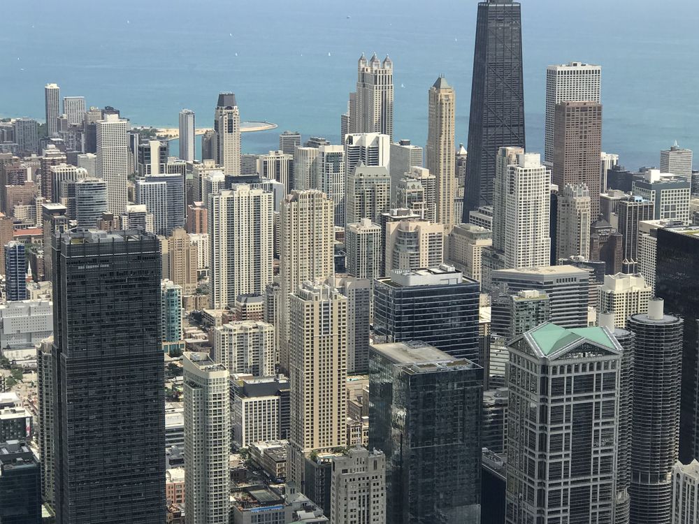 This photo is taken from the sky deck attraction in downtown Chicago
