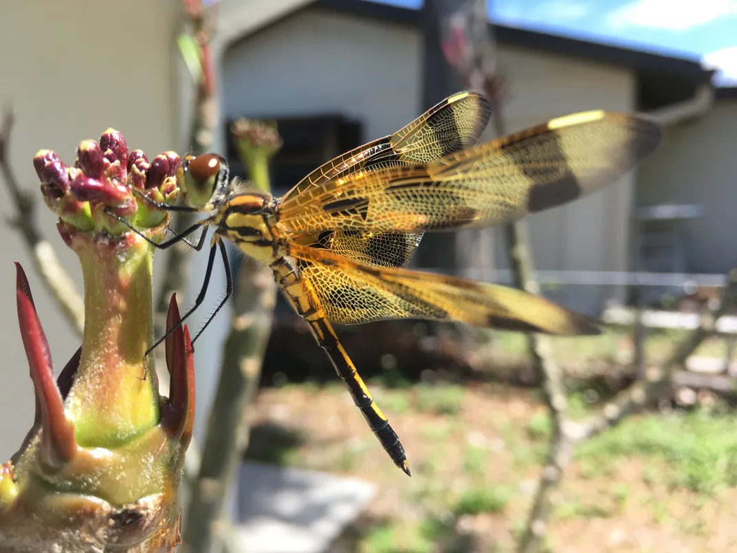 A dragon fly landed on my plumeria tree while I was in my backyard. I was actually trying to capture butterflies when this happened.