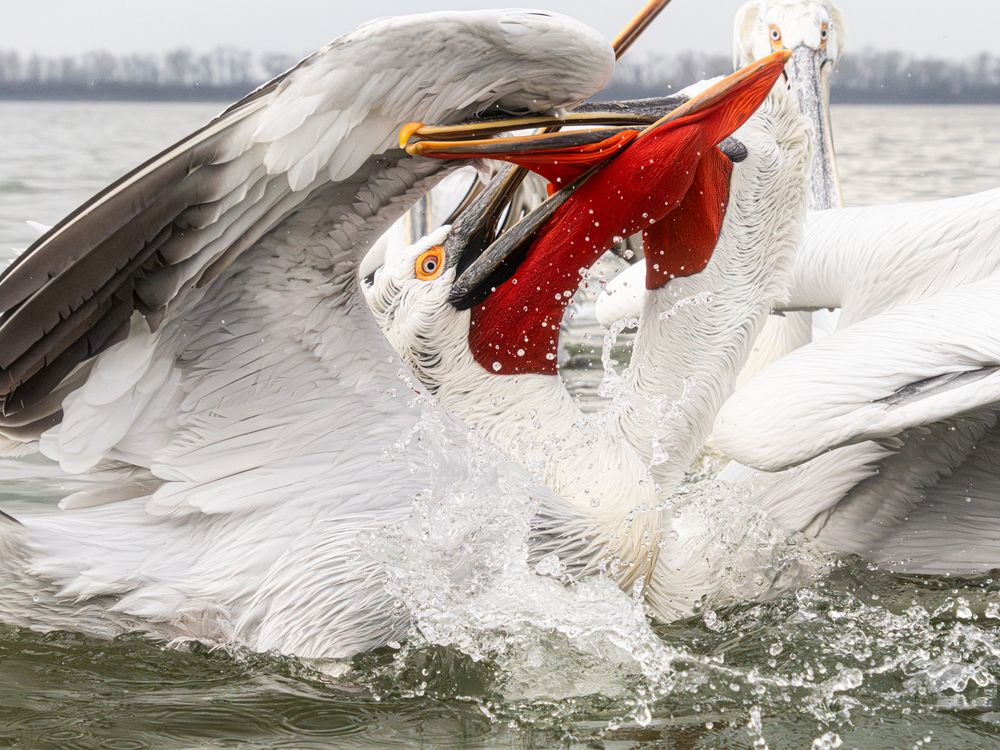 Pelicans fighting on Lake Kerkini