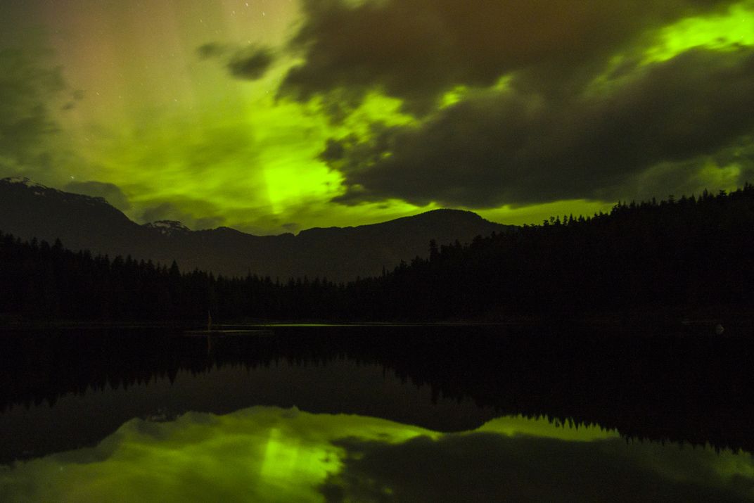 You might be surprised how bright and dramatic Northern Lights can get in lower British Columbia. It definitely surprised the author of this picture. This drama took place at Lost Lake, Whistler on May 8, 2016.