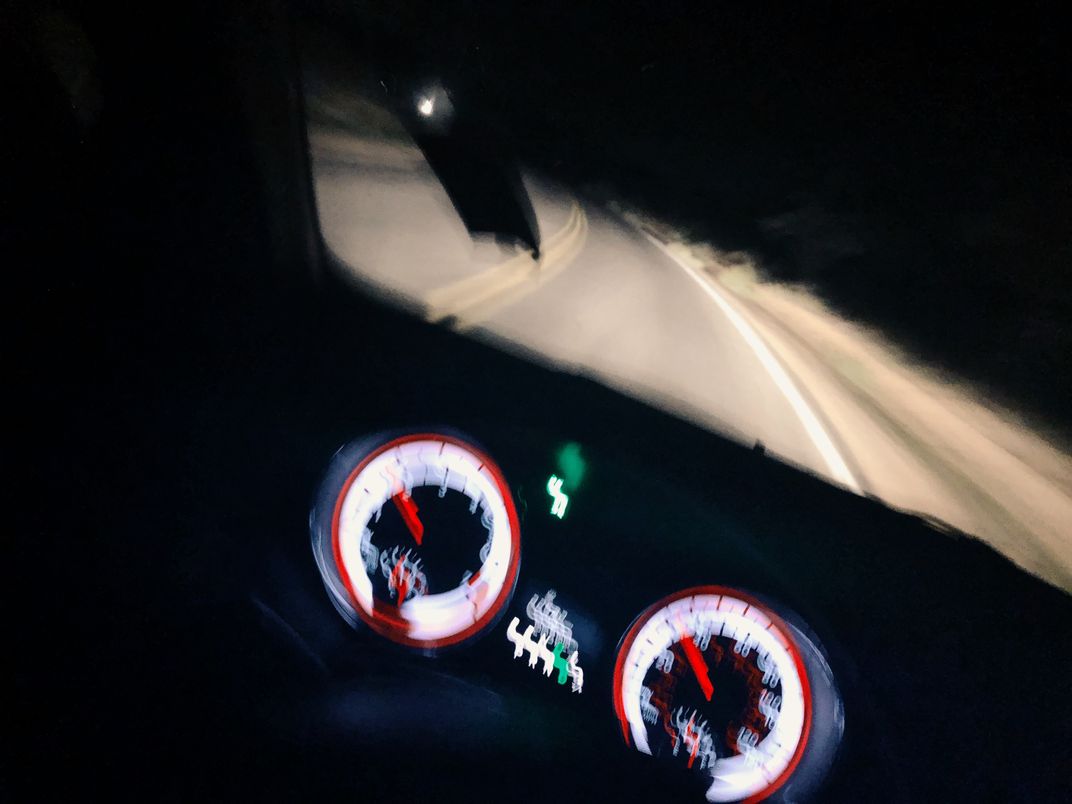 My friends and I were riding down from Keyes View. I was doing my best to avoid hitting coyotes, mice and whatever animal ran across the road. The only lights before us were the ones on the front of the car.