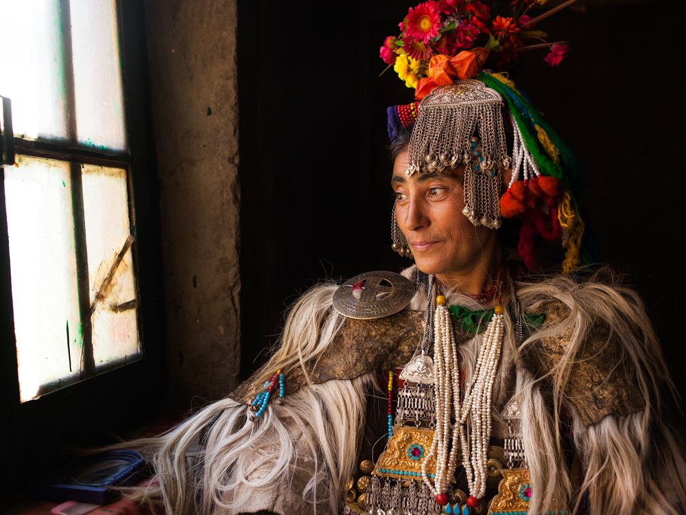 Around 2,500 Drokpas live in three small villages in western Ladakh. The Drokpas are completely different– physically, culturally, linguistically and socially – from the Tibeto-Burman inhabitants of Ladakh. For centuries, the Drokpas have been indulging in public kissing and wife-swapping without inhibitions. Their cultural exuberance is reflected in exquisite dresses and ornaments. Their main sources of income are products from the well-tended vegetable gardens.