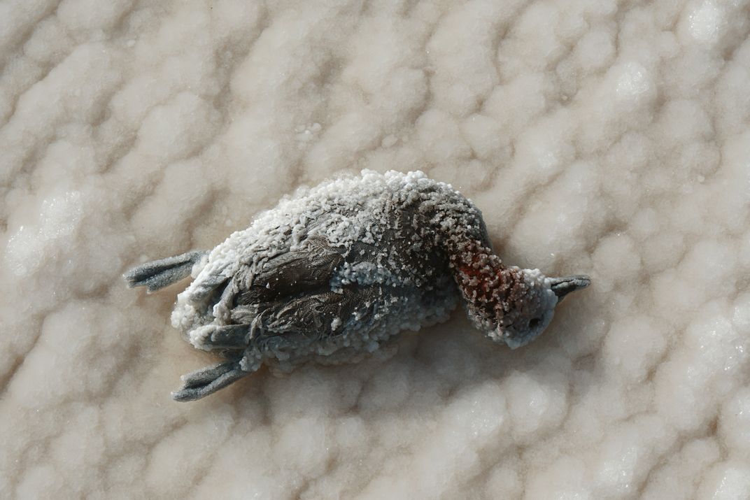 The wild duck, having arrived at the salt lake, could no longer take off and stayed here forever.