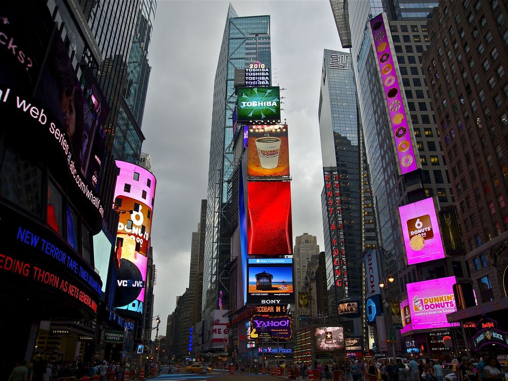 Dusk falls on TImes Square, NYC as the lights begin to come alive.