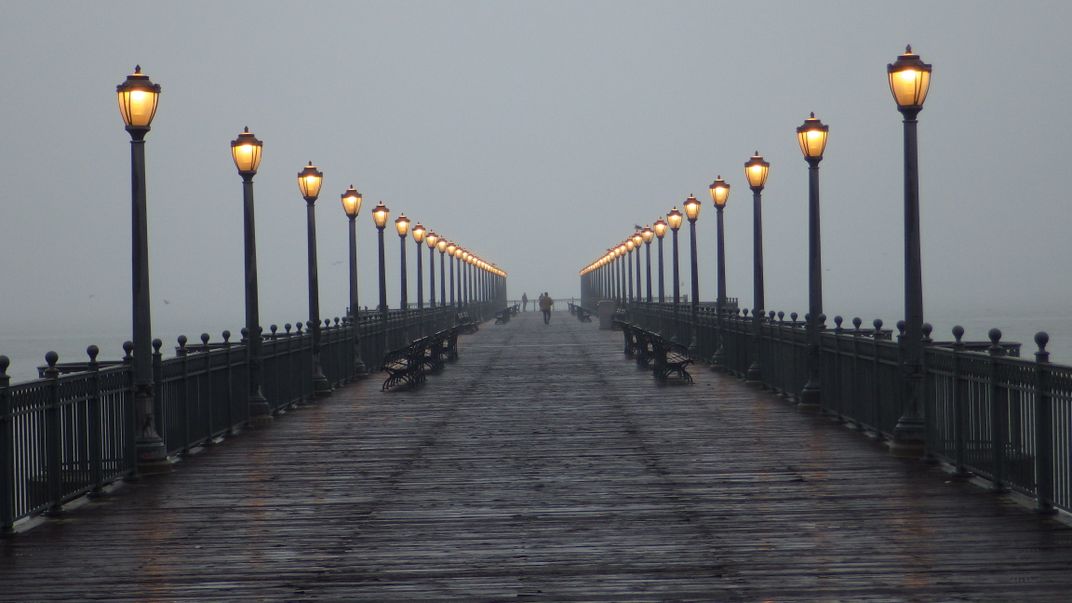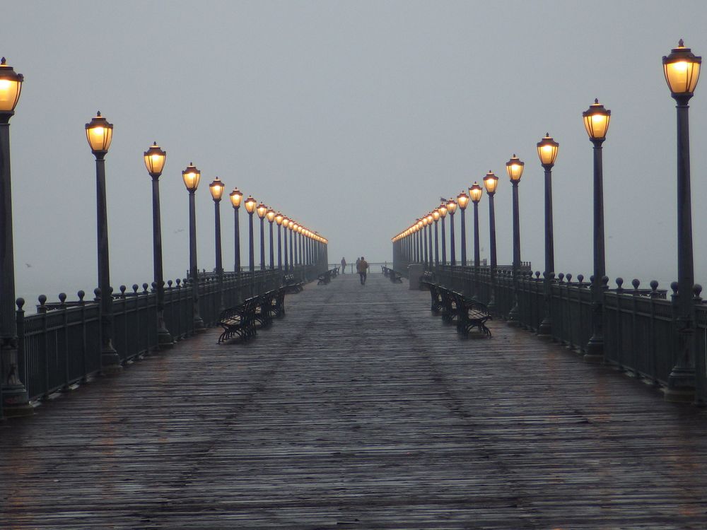 Dusk view of the lights on the pier