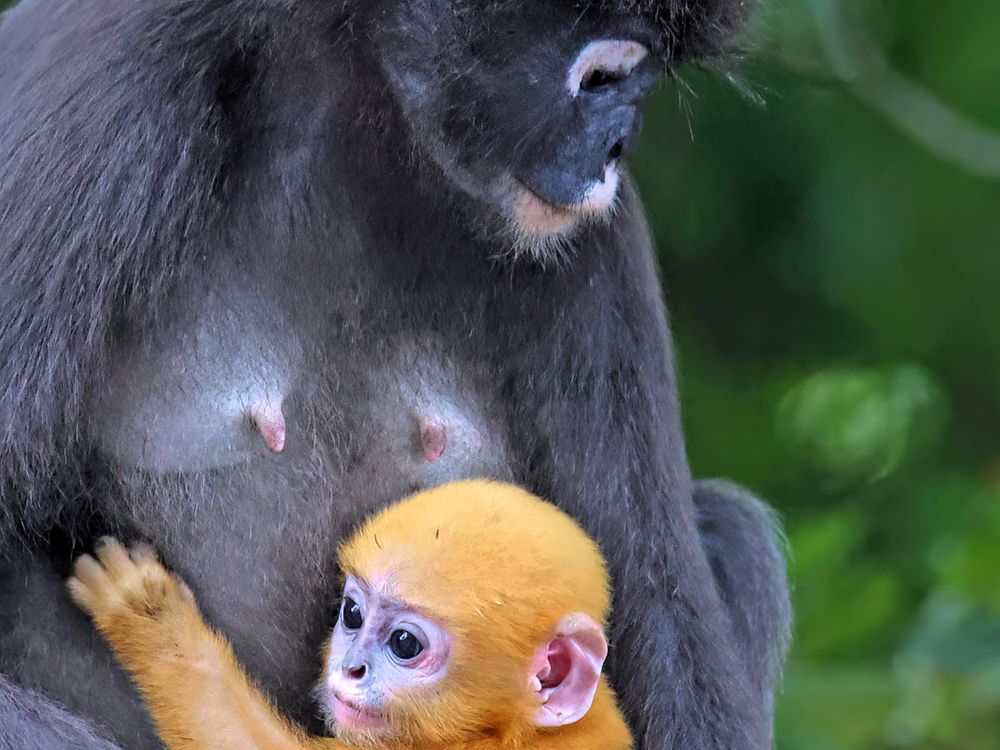 Dusky langurs are a vegetarian primate species mostly found in Northern Malaysia. They forage in troops of around 20 individuals governed by an alpha male. Females give-birth to orange-coloured infants which attract the attention and assistance of other females. In four months the infant will have the adult colouration.