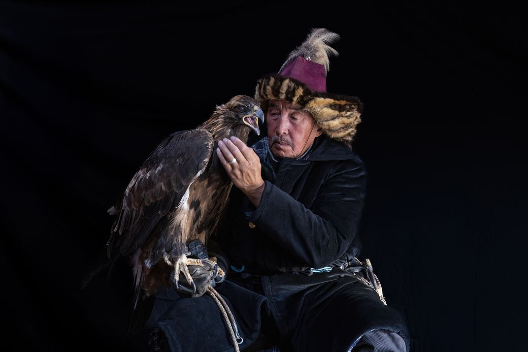 This is an image of a Golden Eagle Hunter and his bird, taken in Mongolia.