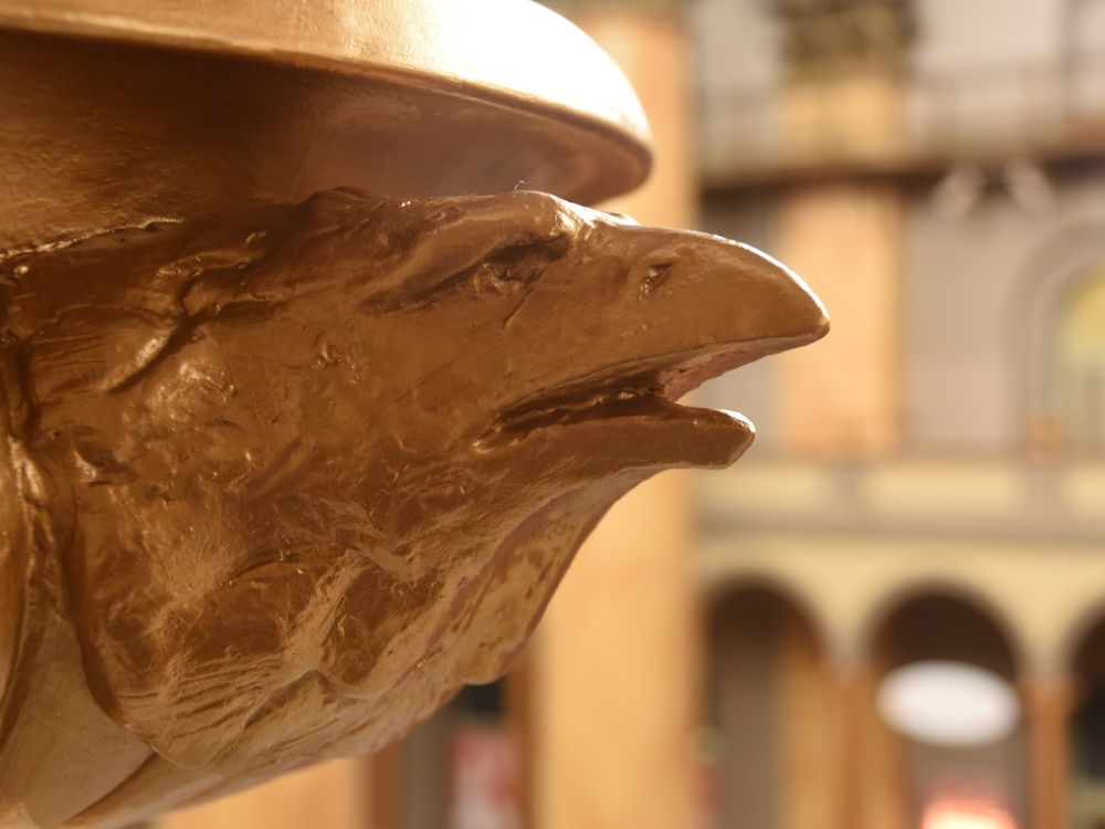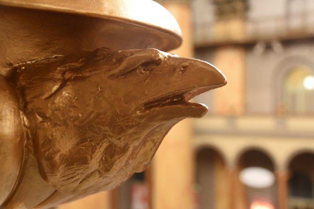 On the very top level of the building there are gold, decorative urns with eagle heads. I focused on the profile of the eagle's head.