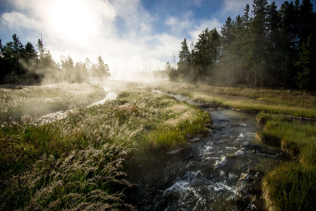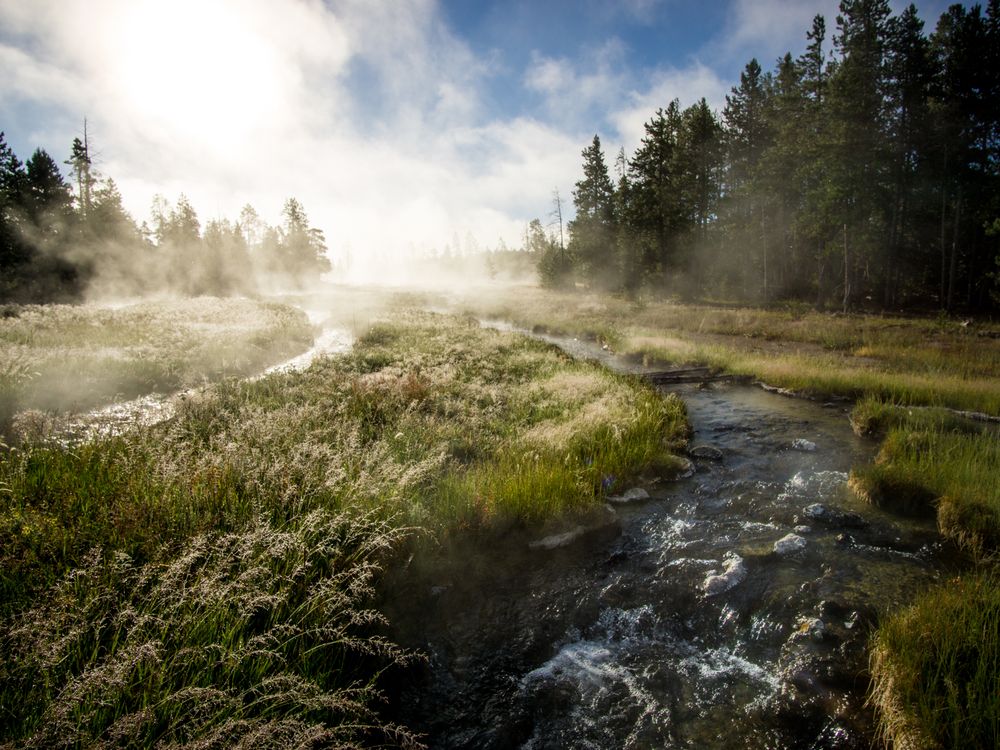 Early morning mist near the Old Faithful Inn in Yellowstone National Park