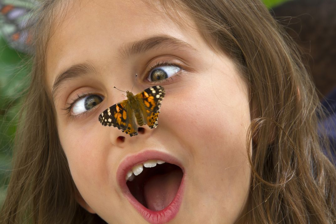 Kailyn Placey, age 7, reacts to an inquisitive butterfly released in honor of Earth Day outside All Children's Hospital John Hopkins Medicine. This photo represents the wonderful beauty of nature and fragile balance we have with Mother Earth to preserve it.