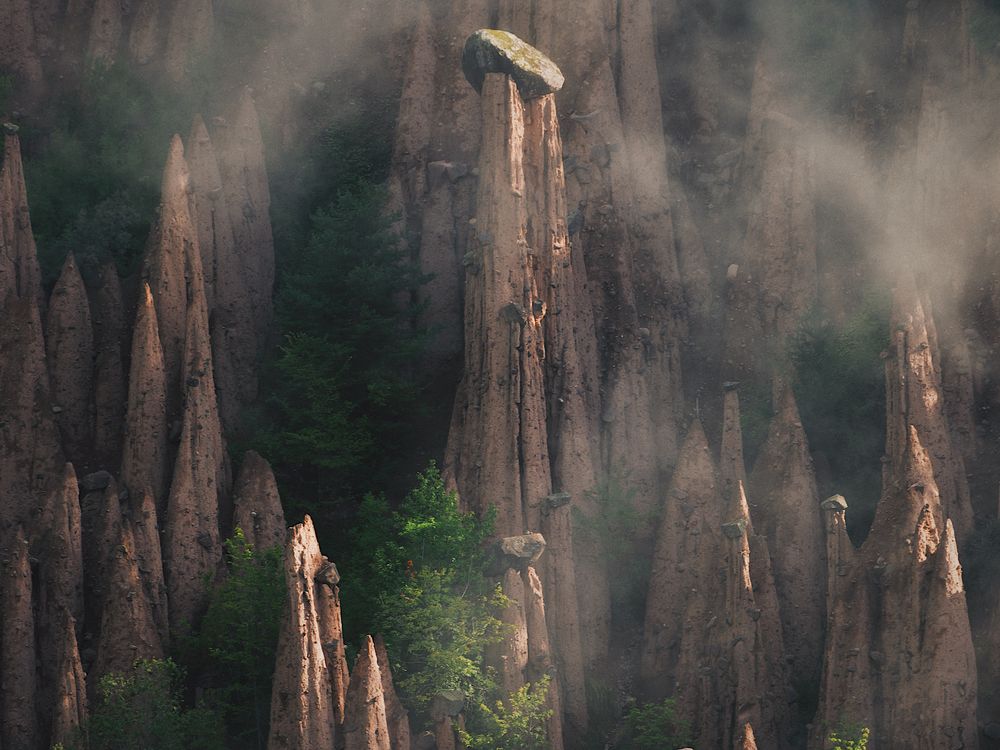 The main cause of the formation of earth pyramids is the continuous alternation of periods of torrential rain and drought. These phenomena, in particularly friable terrain, over the years, increasingly erode the ground and form such earth pyramids.