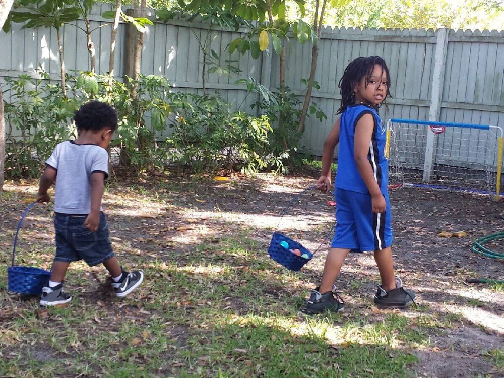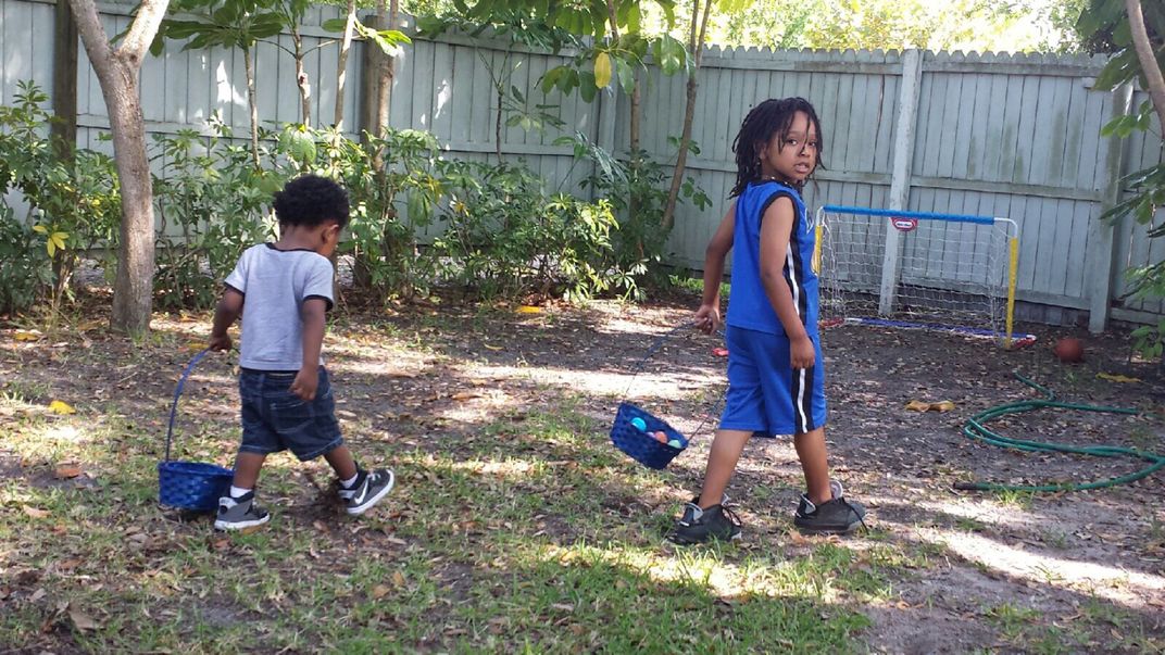 The Hunt is On! My two boys searching for Easter eggs on Easter morning.