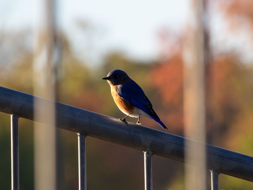 Bluebirds are the friendliest birds in our neighborhood. Their gentle curiosity towards me and my camera has been crucial in building my photography skills. This male bluebird basked in autumnal morning sunlight (in October 2024).