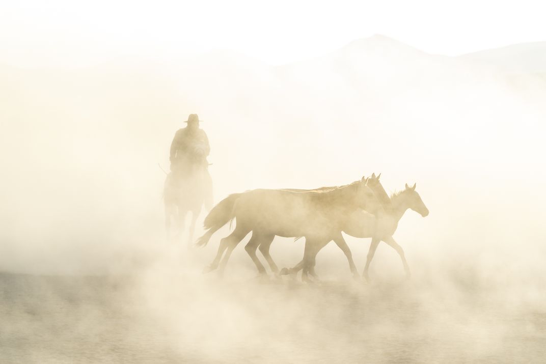 A man herding his horses at the end of the summer when the Cappadocian region turns into a dust bowl.