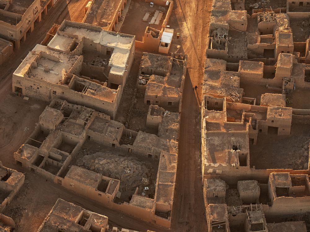 Two souls walk Khaybar’s ancient alleys, where stone homes and narrow streets whisper history. Seen from above, the desert village holds memories in every shadow, every wall—time lingers, and silence remembers.