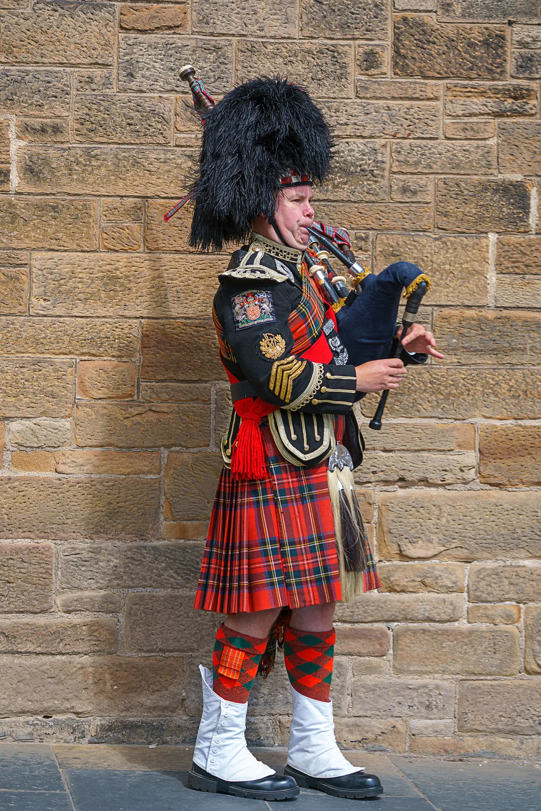 This photograph captures a lone bagpiper performing on the historic streets of Edinburgh — a timeless image where music, heritage, and place intertwine. Dressed in full Highland regalia, the piper stands against the backdrop of ancient stone walls, their deep tones echoing through the narrow closes and open squares of the old city. The moment feels suspended between past and present — a living tradition resonating through mist and memory.